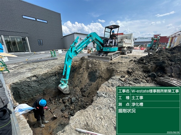 ある程度の位置を現場で明記し、細かい寸法や高さは事前に作成した図面を確認してもらいながら、順序よく掘削してもらいます!