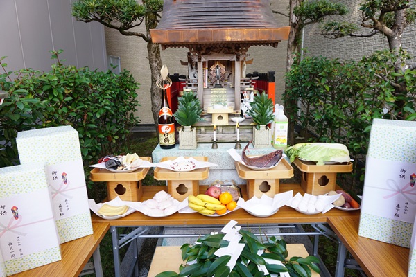 その後、社長をはじめ社員一同、日頃より当社をお守りいただいているお稲荷様へ玉串を捧げ、般若心経を唱えました。
