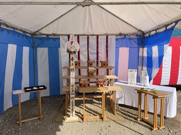 最後は、参列者全員で、今後の工事の安全を祈願し、上棟式は滞りなく納められました。