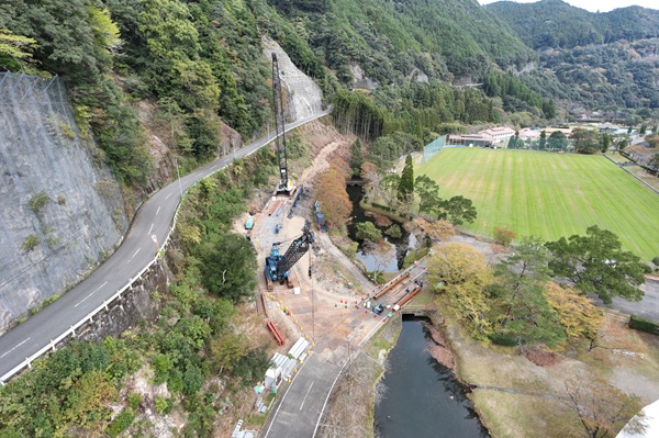 本工事は、地域の生活や救急医療を支えるにあたり、必要不可欠な道路の土砂崩落地区復旧を目的とした工事になります。
