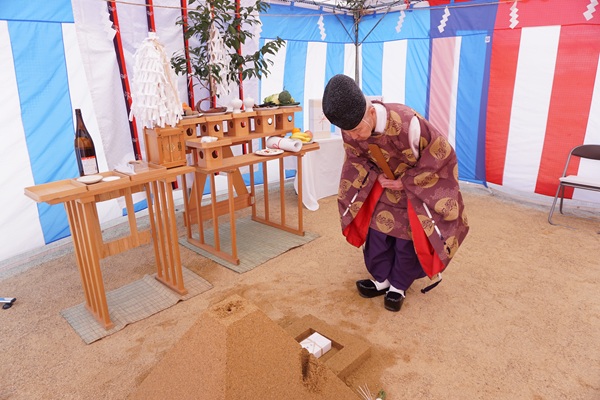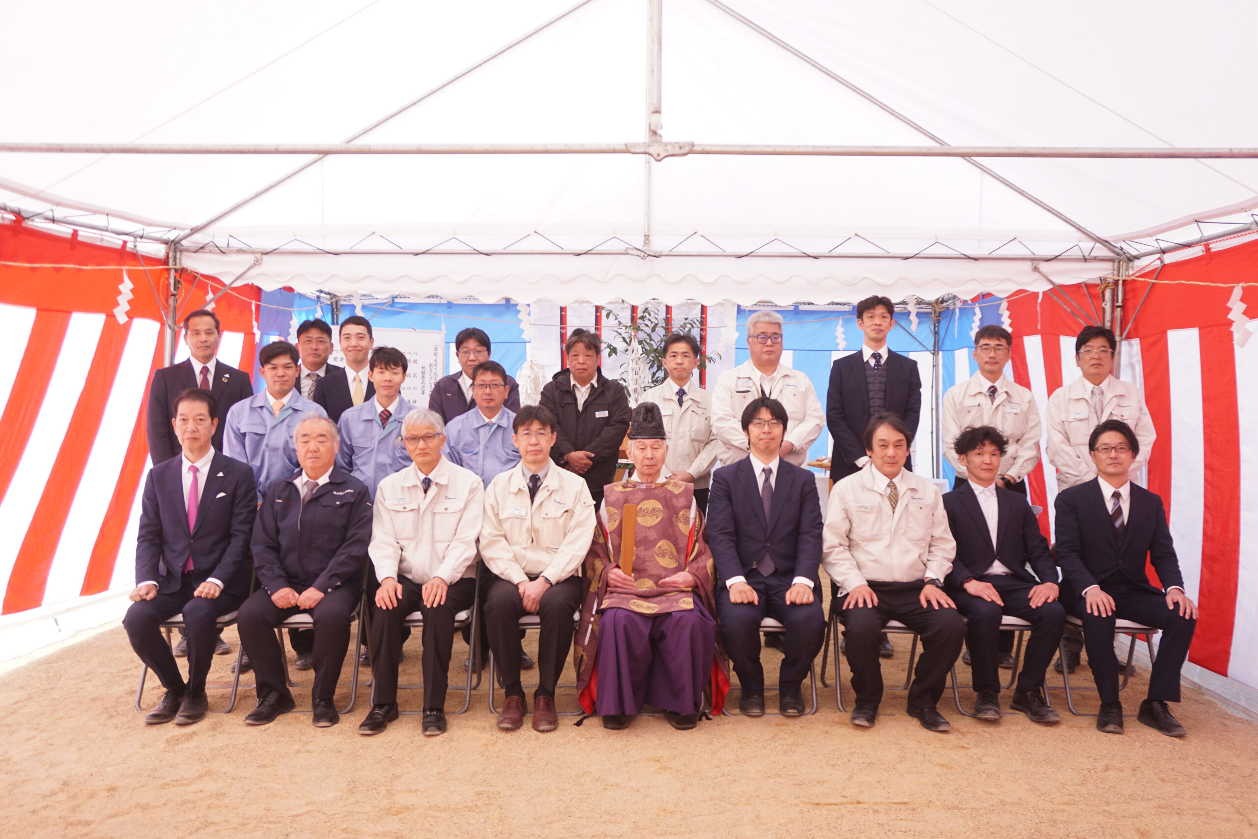 晴天にも恵まれ、日ポリ化工株式会社の関係者様ならびに工事関係者様、弊社スタッフ出席のもと、工事の安全、ならびに新工場の末永い繁栄を祈願いたしました。