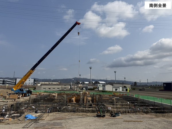 地鎮祭の後、現場には大型の杭打機が搬入・組立され、建物を支える杭工事も完了しました。