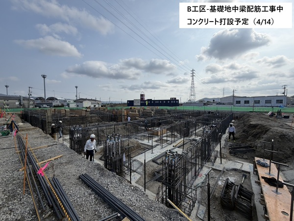 コンクリートを打設すと、鉄骨建て方の準備です。